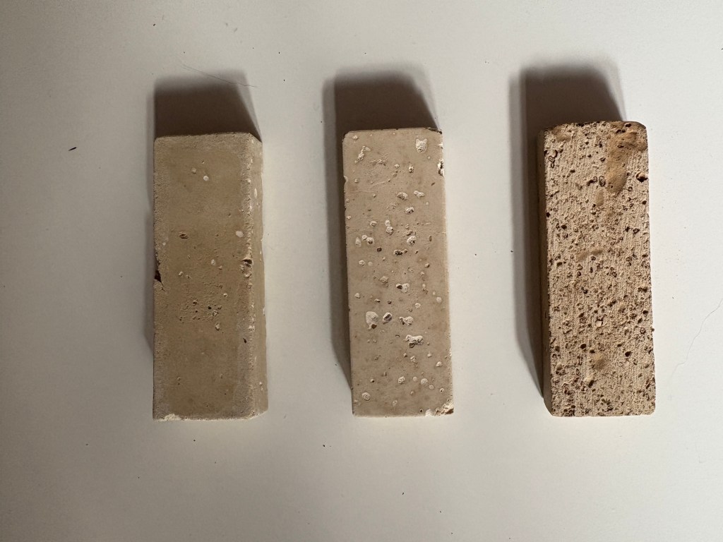 The three samples with different proportions show less raw materials are needed to scent the plaster comparing to the rose-infused and leafy plaster samples.